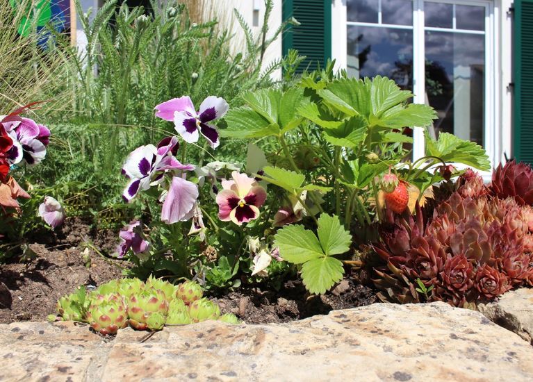 • Anlage Lichthof aus Sandsteinen mit Staudenbepflanzung