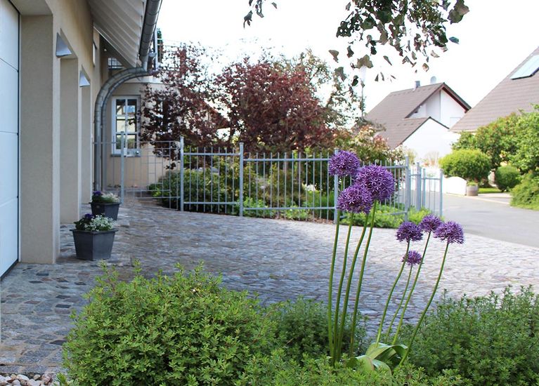 Wir führen fachgerechte Pflasterarbeiten mit Natur- und Betonsteinen aus, um den Gesamteindruck durch akkurat gepflasterte Wege und einheitliche Flächen wie Terrassen zu verstärken. Neben Wegen und Einfahrten spielen auch Einfassungen eine wichtige Rolle für das Erscheinungsbild - als Naturstein z.B. in Granit oder als Betonstein. Um Höhenunterschiede auszugleichen setzen wir Mauern und Treppenaufgänge in die Realität um.